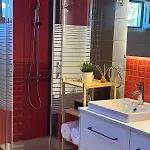 Villa Afrodite heeft een badkamer, voorzien van een apart toilet en een douche. Een droger, toiletartikelen en handdoeken zijn inbegrepen voor extra comfort.